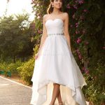 Robe de mariée avec sans manches asymétrique haut bas en organza avec perle – GoodRobe