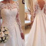 Robe de mariée naturel en satin avec manche longue de mode de bal encolure ronde – GoodRobe
