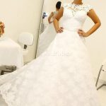 Robe de mariée de princesse en chiffon avec manche courte col u profond jusqu’au sol – GoodRobe