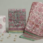 Shop a designer hand-block-printed Kota Doriya saree online. Elegant, lightweight, and breathable, perfect for festive occasions or casual celebrations with a traditional yet stylish look.
